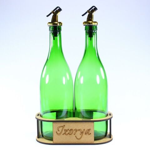 Lazer Kesim Stant ile Birlikte 2 Adet 750 ml Açık Yeşil Cam Şişe